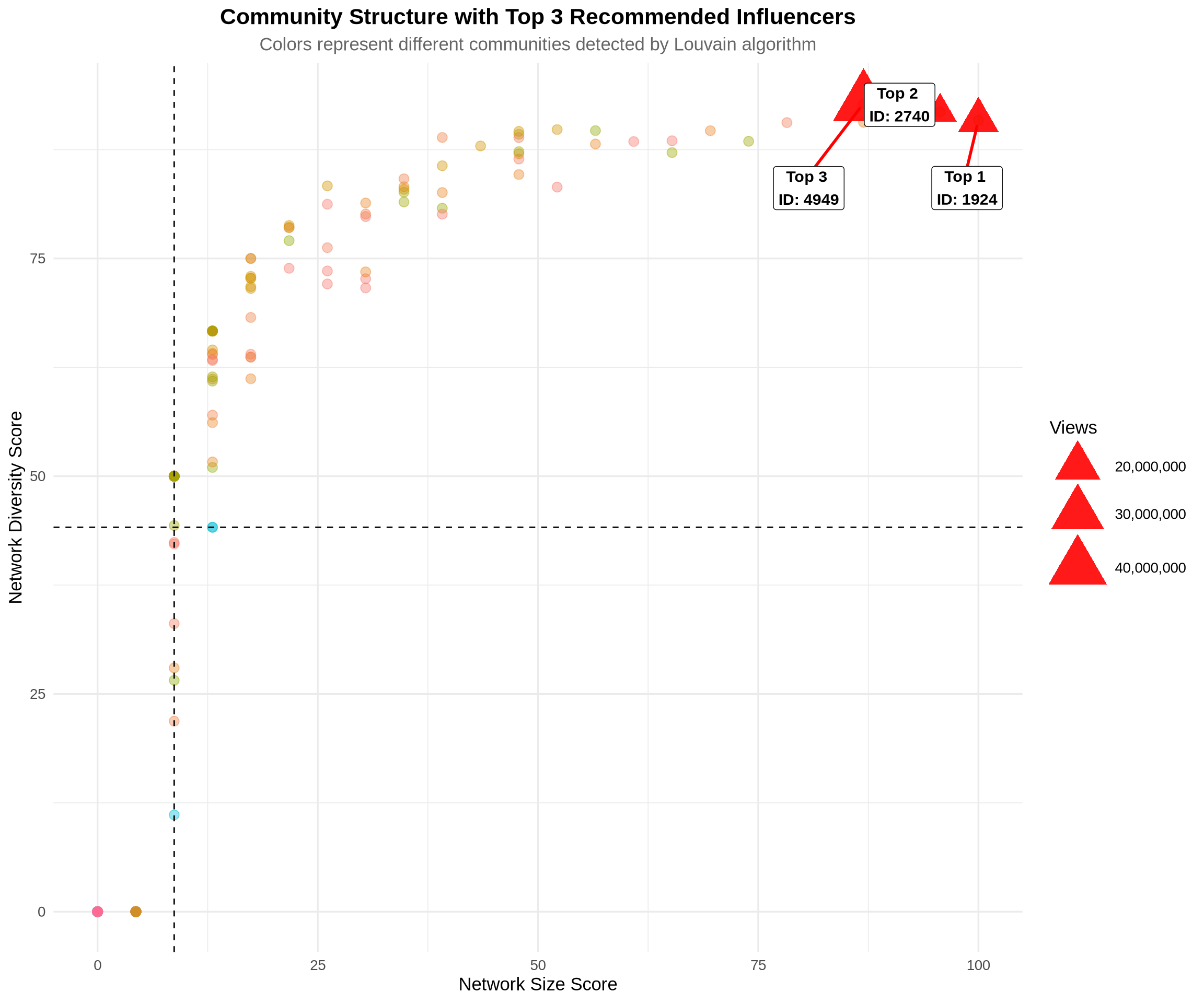 title = "Community Structure with Top 3 Recommended Influencers",